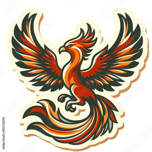 Mityczny Feniks - wzór, projekt graficzny w stylu retro, vintage