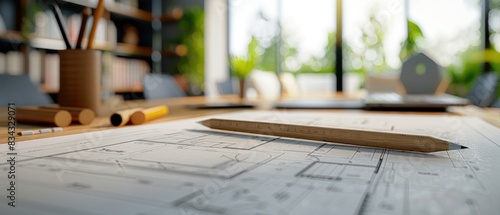 A blank mockup of a construction blueprint lies on an architect's desk, awaiting the design expertise of a professional builder.