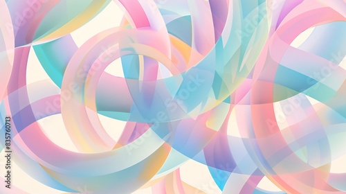 A balanced vector illustration featuring interlocking geometric patterns in soft, pastel Pride colors, creating a harmonious and balanced composition, ideal for promoting Pride month in a commercial
