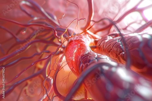 Close-up of human blood vessels and arteries showcasing the detailed vascular system, emphasizing human biology, anatomy, and medical study.