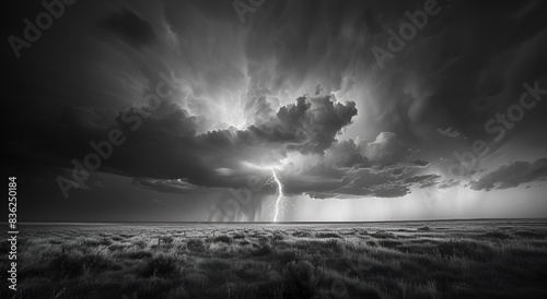 Czarnobiały krajobraz burzy z błyskawicą