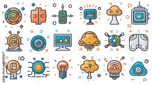 Modern illustration of Artificial Intelligence web icons. Innovative technology, robots, bots, brains, and collection icons.