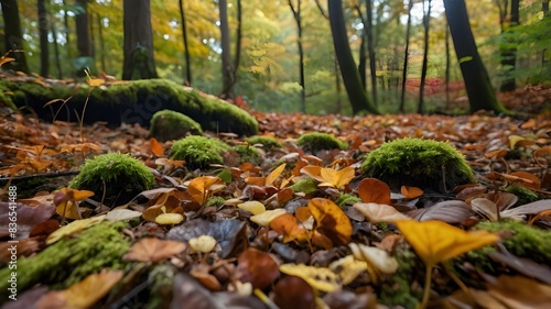 Autumnal Detail: Intricate Temperate Forest Floor View, Seasonal Tapestry: Detailed Autumn Temperate Forest Floor, Forest Floor Wonders: Close-Up of Autumn in a Temperate Woodland, Nature's Mosaic