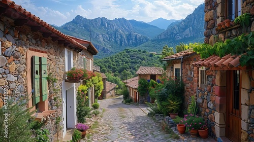 Solo travel, individual exploring picturesque village, sense of freedom and discovery