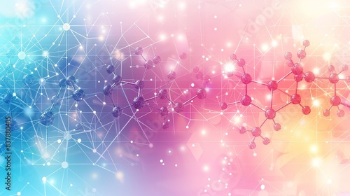 A minimalist background with geometric shapes in pastel colors, overlaid with a molecular model of a neurotransmitter, illustrating its significance in neurological studies within biotechnology.