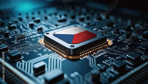 A close-up of a computer chip featuring the Czech flag, highlighting Czech advancements in technology