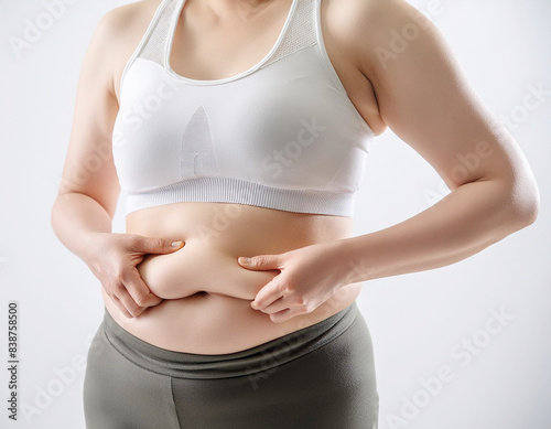 メタボリックシンドロームの女性がお腹の贅肉をつまむ,Generative AI AI画像