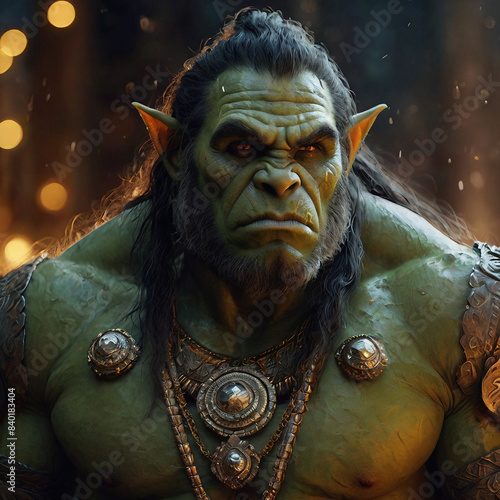 シャープな顔立ちと上品に乱れた服装で、神秘的で洗練された雰囲気を醸し出す、ひときわ謎めいたオーク。この魅惑的な絵画では、彼の鋭い金色の瞳が、重力に逆らって滝のように流れる黒檀の髪に囲まれ、語られない秘密を秘めているかのようです。この画像はデジタルの傑作であり、複雑なディテールと鮮やかな色がすべての要素を強烈に際立たせています。このハイエンドのポートレートは、視聴者をこの流行にふさわしいオークの謎を