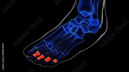 Middle phalanx foot bones anatomy for medical Concept 3D rendering