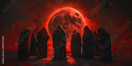 Blood moon ceremony demonic cultists performing sinful sacrifice