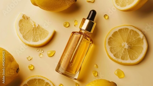 Luminous lemon essential oil with fresh citrus slices
