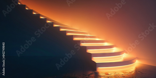 Excellence Elevation: Abstract staircase ascending towards a glowing light, signifying continuous improvement and growth