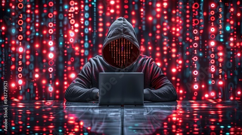 A computer hacker commits crimes in the digital world. Displaying real programming scripts codes and hacking tools. Malware concept. Hacker background.