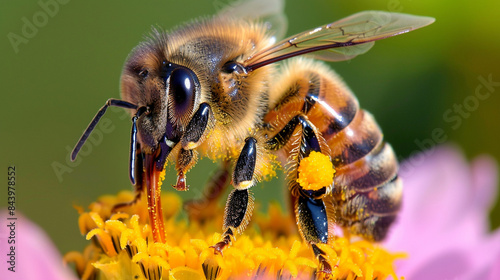 Close-up of a bee collecting nectar from a vibrant flower