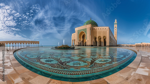 Hassan II Mosque in Casablanca, with the Dome and beautiful ornaments decorating the magnificent building, AI generated Images