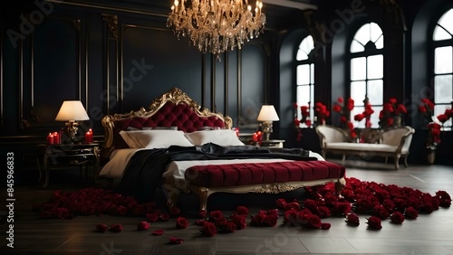 Luxurious black room - luxurious suite - romantic atmosphere - red roses - candles - ideal for couples and lovers - wedding night - honeymoon