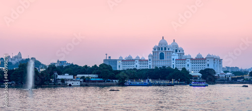 Hyderabad cityscape, is the fourth most populous city in India, Aerial view of Telangana Secretariat building.