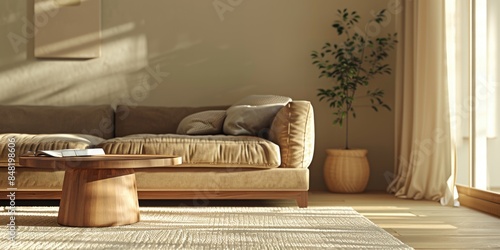 A cozy living room with a sofa and coffee table, perfect for relaxing or entertaining
