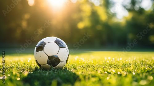 EM 2024 soccer Football. Soccer Ball on Lush Green Grass with Bokeh Background. Soccer & Sports Concept