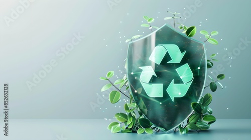 Digital shield recycling symbol environmental insurance, eco-friendly, protection, security, coverage