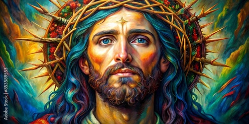 The Face Of Jesus Christ, With A Crown Of Thorns, In The Style Of Renaissance Painting.