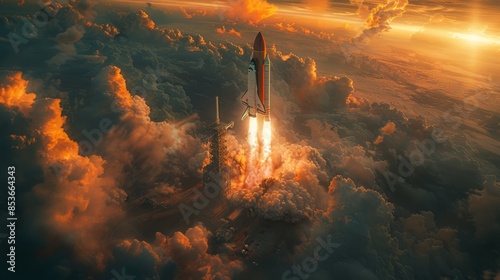 A glimpse of a rocket launching vertically from its pad, a sight defining the power, will, and capacity of space exploration.