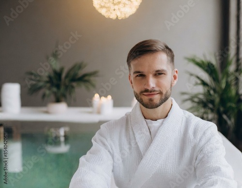 Przystojny mężczyzna w szlafroku w salonie piękności spa