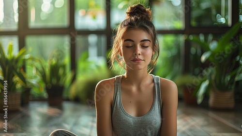 A teenager practicing progressive muscle relaxation, learning techniques to release tension and stress from the body. Illustration, Minimalism,