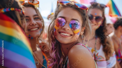 LGBT pride portrait of young woman at a pride march LGBTQ diversity and community concept.