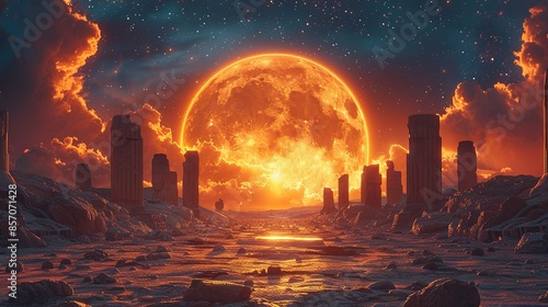 A celestial coliseum where cosmic beings gather to spectate battles of epic proportions, their roars echoing through the heavens. Illustration, Minimalism,