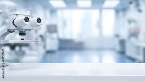 a close up of a empty table with white ophthalmological clinic room background