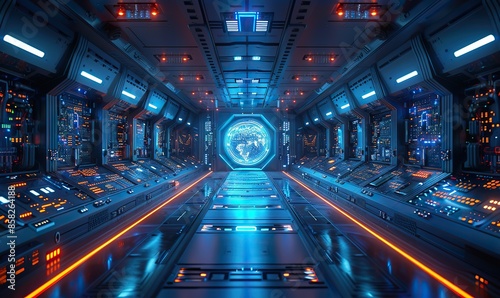 Sleek holographic displays illuminate a vast control room, beckoning you to witness the cutting-edge technology of the future. illustration images