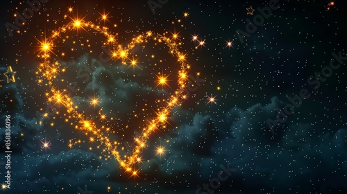 Mockup of a heart shaped constellation traced with glowing stars against a dark sky, symbolizing eternal love and cosmic connections