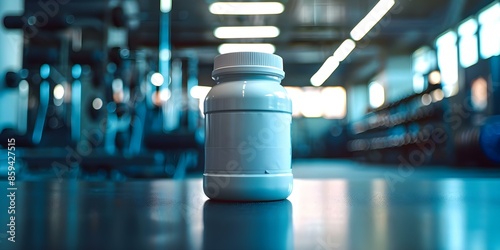 Display of creatine powder in a gym setting for sports nutrition. Concept Gym Display, Sports Nutrition, Creatine Powder, Fitness Supplements, Exercise Supplements