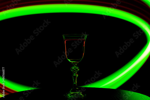 Uzależnienie od alkoholu koncept, kieliszek z winem w mroku, wpaść w sidła uzależnienia