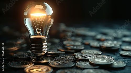 Lighted bulb coins electrical plugs Increase and trend in energy tariffs : Generative AI