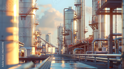 Rafineria Naftowa z Zbiornikami Magazynowymi i Rurociągami w Słoneczny Dzień