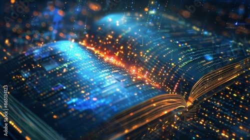 Digital Knowledge Illuminating the Pages of Progress with Glowing Code Elearning Concept Stock Image