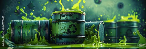 hazardous toxic waste - green ooze and slimy sludge in barrels. waste from industrial production