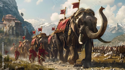 Experience strategic brilliance of Hannibal crossing the Alps with his army and elephants during the Second Punic War a daring military feat perfect for enthusiasts of ancient military history