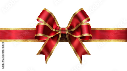 Red decorative ribbon and bow with gold edging isolated on transparent background, PNG with transparent background