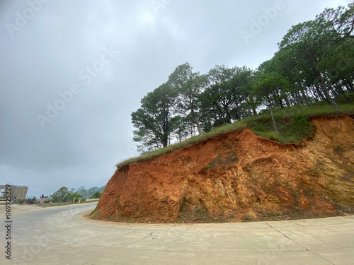 Zigzag curve road on the mountain slopes."