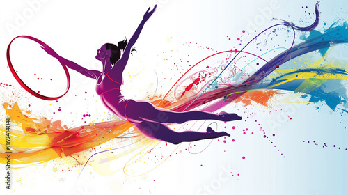 Olympic rhythmic gymnastics banner decorated with swirling colors and a hoop - perfect for promoting sporting events.