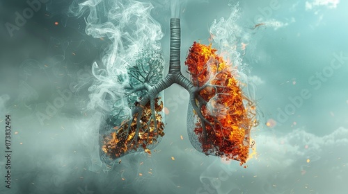 Lungs made of smoke transforming into fresh air, conveying the health benefits of quitting smoking, educational and artistic illustration