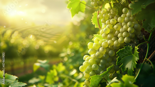 #961384885Still life of green grapes in a vineyard with sunny background Macro
