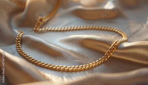 A simple, elegant gold chain necklace on a soft, grey velvet