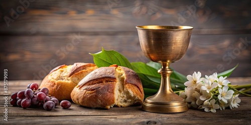 Easter communion still life with chalice of wine and bread, Easter, communion, still life, chalice, wine
