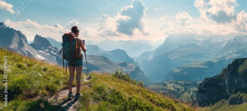 Hiker Enjoying Scenic Mountain Trail with Majestic Valley Views for Outdoor Adventure Inspiration