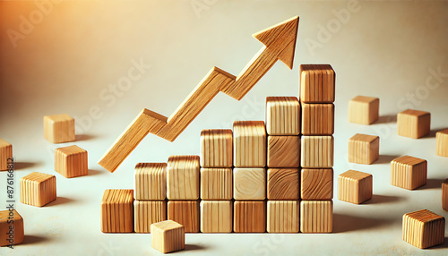 Blocs de bois montants avec une une flèche symbolisant croissance et succès en affaires