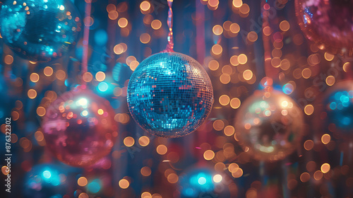 Une boule à facette suspendue au plafond lors d'une soirée disco